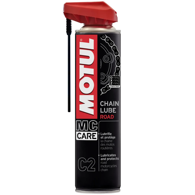 Çok hızlı motosikletler için özellikle önerilir: MOTUL CHAIN ​​LUBE ROAD, yüksek hızlarda ve yüksek devirlerde bile zincire yapışır