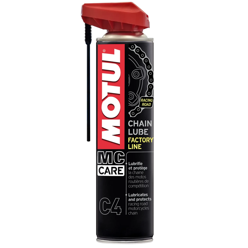 LUBE FACTORY LINE Motul’un motosiklet yarışındaki tecrübesinin bir sonucu olarak yarış motosiklet zincirlerini yağlamak için özel olarak geliştirilmiş motor yağıdır.